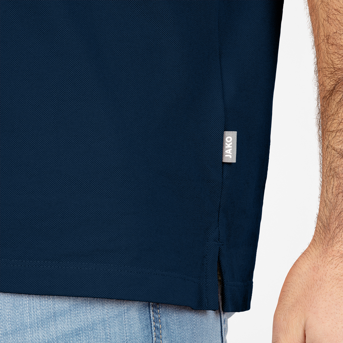 Diskretan JAKO logo na okovratniku i boku majice